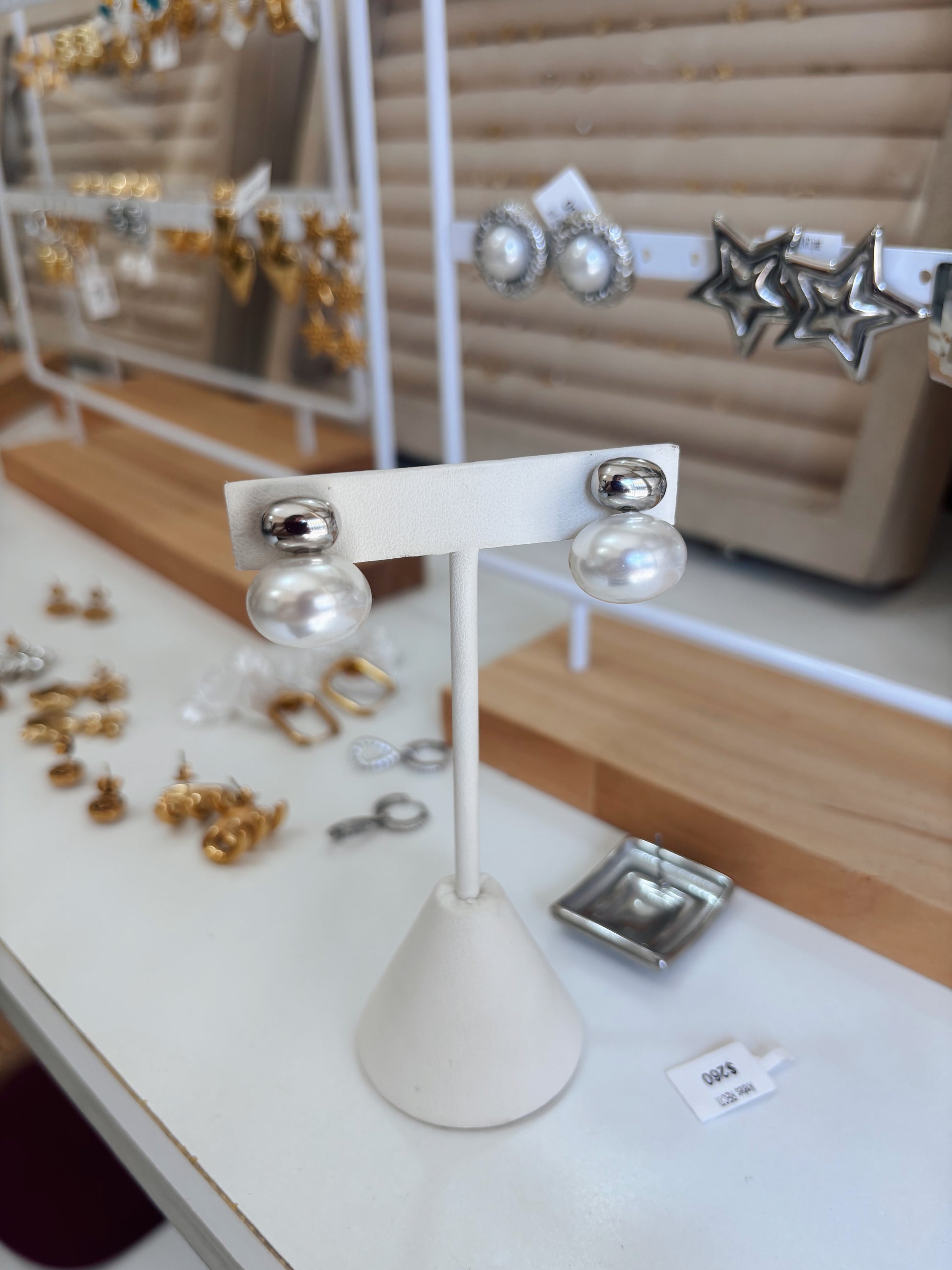 Arete boli perla plateado